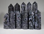 Indigo Gabbro, often referred to as “Mystic Merlinite,” encapsulates the profound mysteries of the cosmos within its mesmerizing depths. Our Indigo Gabbro tower stands as a testament to the awe-inspiring beauty and enigmatic allure of this exquisite stone.