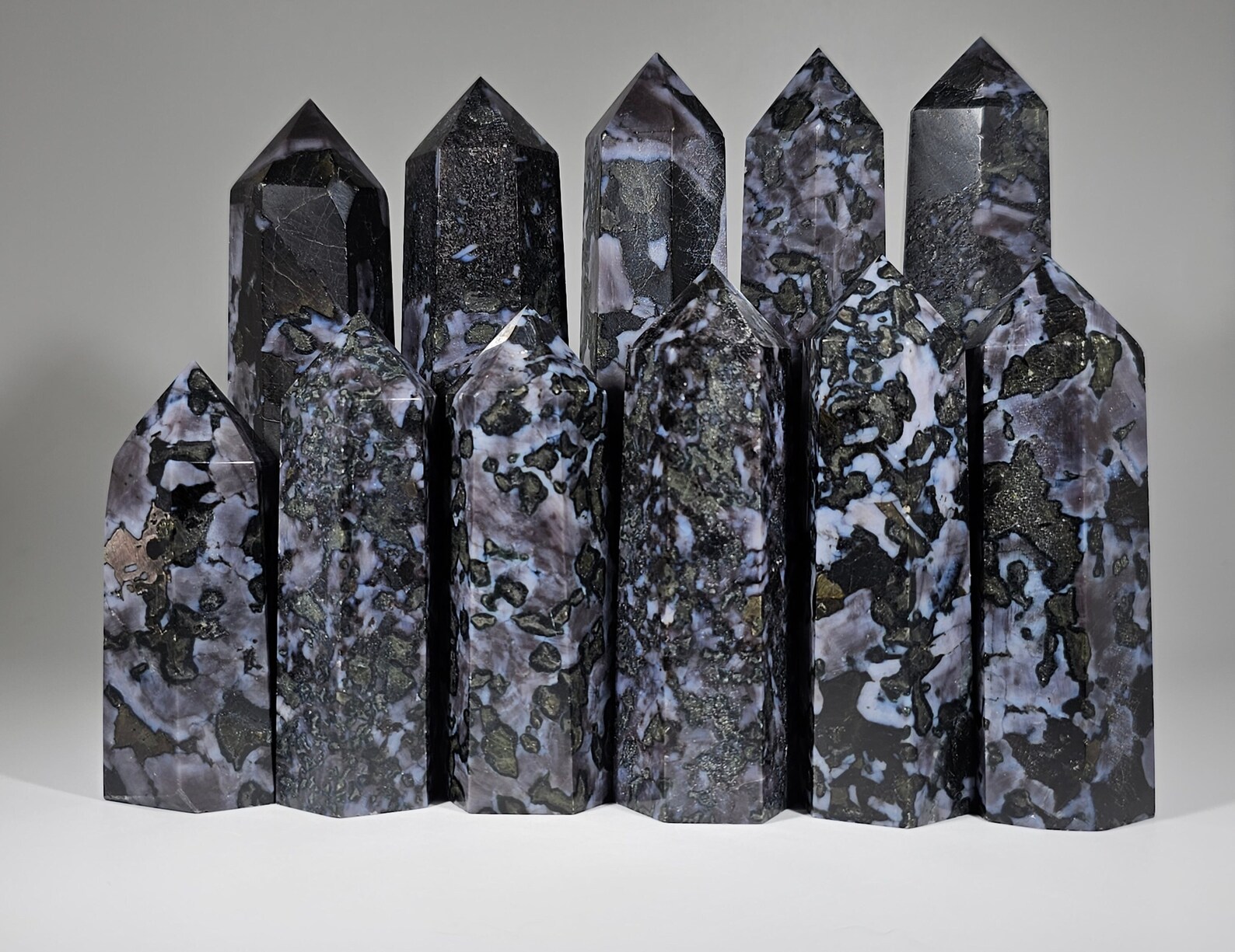 Elevate your space with the profound beauty and metaphysical power of our Indigo Gabbro tower today!