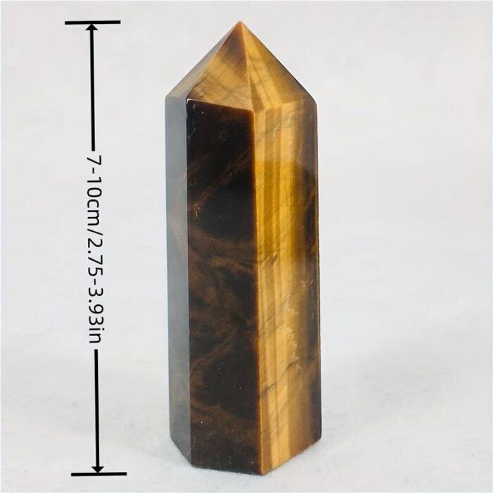 Appearance: A Tiger’s Eye Tower is typically a carved, elongated shape resembling a tower. It often has a smooth, polished finish to showcase the stone’s chatoyant effect.